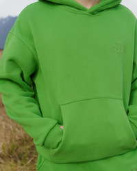- Length: Measure from the highest point of the shoulder (next to the neckline) straight down to the bottom hem of the hoodie.