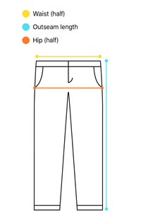 - Hip – Measure straight across the sweatpants at the widest part of the hip area. This is half of the total hip measurement.